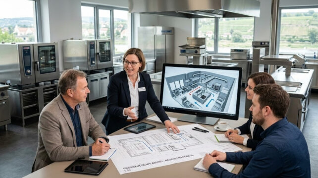 Seit unserer Gründung im Jahr 1995 begleiten wir Gastronomen und Großküchenbetreiber als verlässlicher Partner bei der Umsetzung ihrer Projekte. Unser Anspruch ist es, Ihnen nicht nur hochwertige Technik zu liefern, sondern ein perfekt funktionierendes Gesamtsystem zu schaffen, in dem jeder Handgriff sitzt. Alles beginnt mit einer fundierten Beratung, bei der wir Ihre individuellen Anforderungen und Betriebsabläufe genau analysieren. Auf dieser Basis entwickeln wir eine maßgeschneiderte Planung, die ergonomische Arbeitswege mit modernster Effizienz verbindet und dabei alle gesetzlichen Standards sowie HACCP-Richtlinien präzise berücksichtigt.