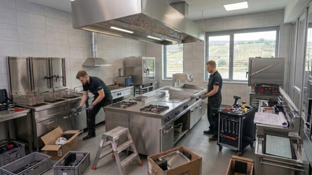 Die beste Planung entfaltet ihre Wirkung erst durch eine handwerklich perfekte Ausführung. Unsere erfahrenen Monteure sorgen dafür, dass Ihre neue Küchenausstattung sicher geliefert und fachgerecht in Betrieb genommen wird. Wir koordinieren die gesamte Logistik und den Aufbau vor Ort, damit alle Komponenten exakt dort sitzen, wo sie hingehören. Seit 1995 steht unser Name für Zuverlässigkeit und Sauberkeit auf der Baustelle – wir sorgen für eine reibungslose Installation, damit Sie sich voll und ganz auf Ihr Geschäft konzentrieren können.